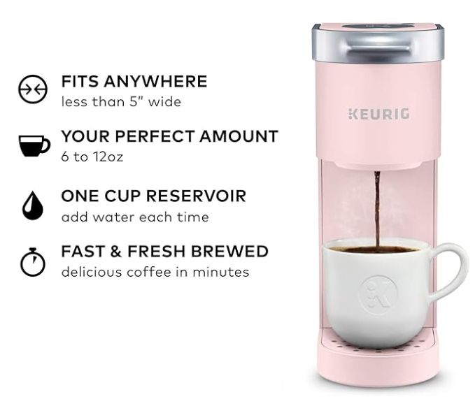 Keurig K-Mini Single Serve K-Cup Pod Coffee Maker, 6 to 12oz Brew size, with Cord Storage, Perfect for Small Spaces, Dusty Rose